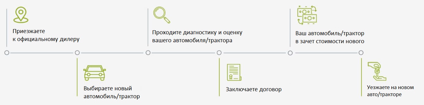 Наш менеджер договаривается с вами о времени и дате обмена вашего автомобиля/трактора на новый